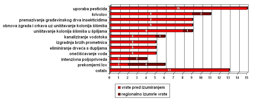 Slika 1. Razlozi ugroženosti sisavaca Hrvatske