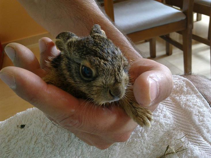 Moj otac je danas kosio travu po placu i našao mladunče divljeg zeca, te ga instinktivno i s neznanjem uzeo i donio kući. Znao sam da je sada na nama da ga odnjegujemo, pročitao sam vaše savjete sa sajta i pridržavat ću ih se. Kad sam ga stavio na tren kod ženke kunića koju imam, on joj se zavlačio pod trbuh pa sam tako vidio da još uvijek sisa, mali je - stane na dlan. Znate li nekoga u Beogradu tko se bavi čime i vi, da ga odnesem kod njih na rehabilitaciju? Ako treba dat ću im novac za troškove, oni će to svakako bolje odraditi od mene.