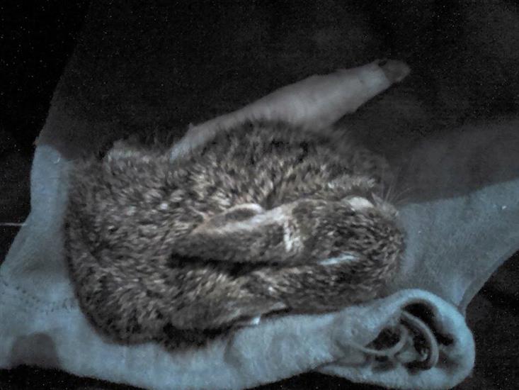 U subotu kada je nađen, zečić je tijekom dana bio miran, a navečer je živnio i skakao. U nedjelju prijepodne bio je dobro, malo je hodao, ali navečer jedno 5 min nije mogao stati na noge - rušio se, pa smo mu dali kravlje mlijeko sa šećerom i nakon toga je došao k sebi. Tu noć je počeo pišati i kakati (dosta obilno, nije proljev). U ponedjeljak rano ujutro smo bili kod veterinara i tamo je bio poprilično živ. Kupili smo mu zamjensko mačje mlijeko koje baš i neće da jede. Tijekom dana slabo jede, spava... napravi korak i zaspi, pa opet korak i zaspi... Kako da mu pomognem? Težak je 100 grama.
