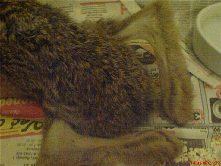 Koliko god potresno bilo, odlučili smo objaviti slike divlje zečice koja je hranjena običnim kravljim mlijekom ŠTO JE POGREŠNO. Ona je, za razliku od mnogih, preživjela prvih mjesec dana života, ali slike pokazuju što tako othranjenje zečeve može dočekati u prirodi. Zečica iz ove priče imala je "sreće" što joj se to dogodilo dok je bila u kavezu za podivljavanje, a ne kasnije kada bi bila sama u prirodi… te smo ju mogli (i morali) dati eutanizirati.